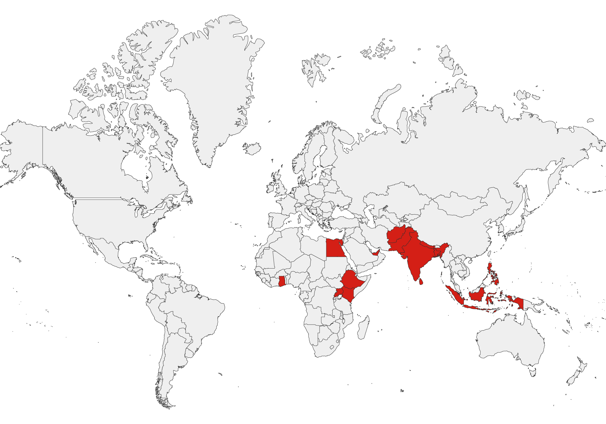 INDIA | PAKISTAN | SRI LANKA | NEPAL | BANGLADESH | AFGHANISTAN | PHILIPPINES | INDONESIA | GHANA | KENYA | UGANDA | ETHIOPIA | EGYPT